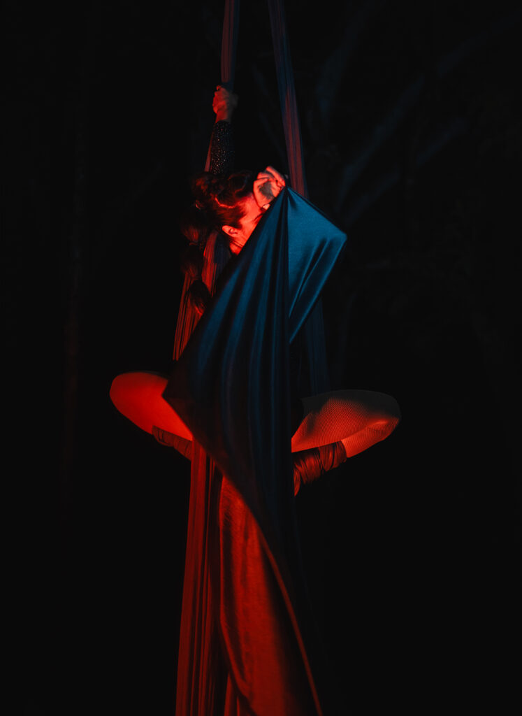 Mi primera disciplina aérea fue la hamaca en 2014 y me enamoré de inmediato. Entrené durante tres años antes de ser contratado por una escuela de circo local para enseñar telas y actuar en espectáculos. Trabajé en otras dos compañías de performance y principalmente hice festivales, eventos corporativos y privados.
